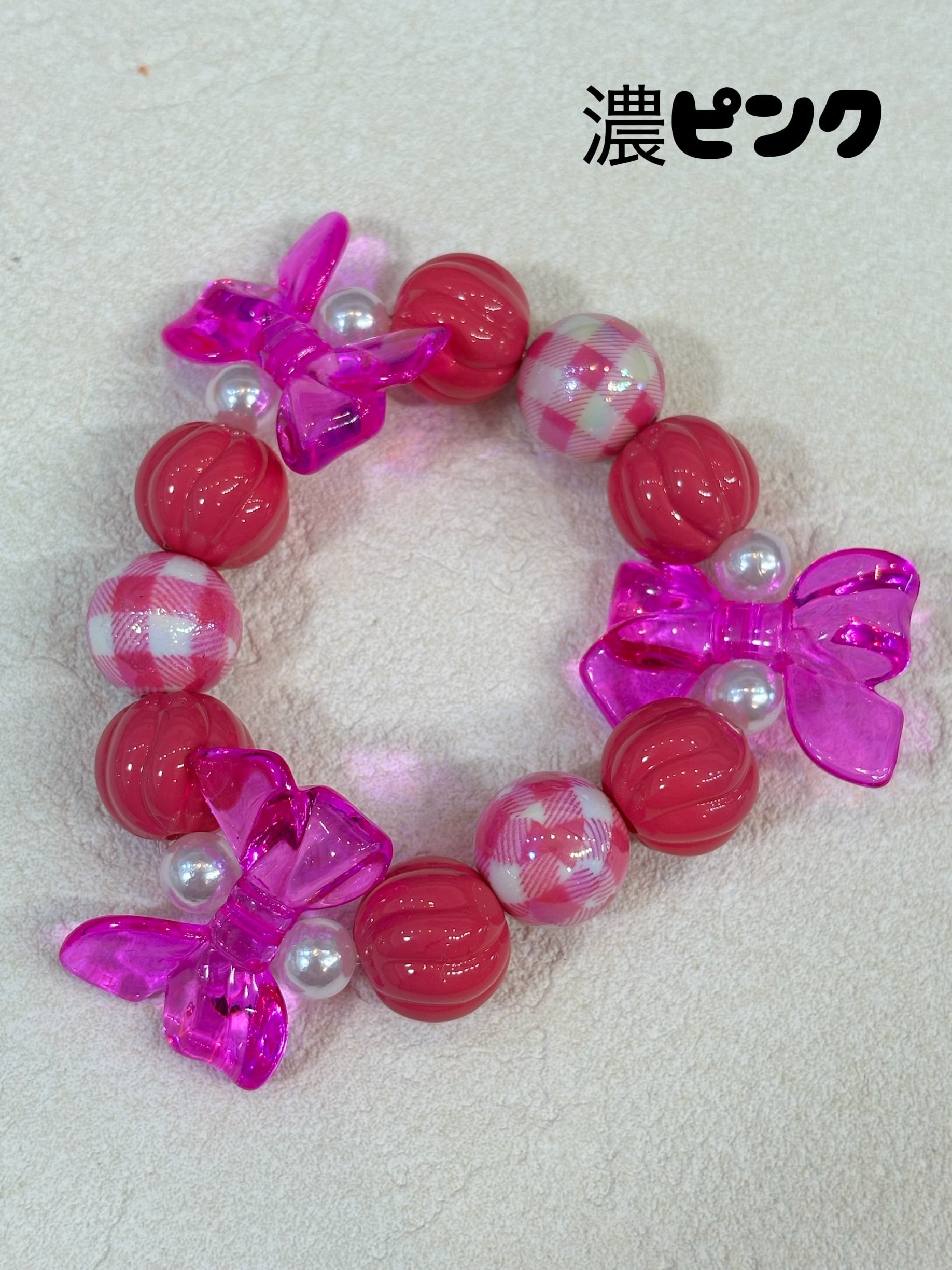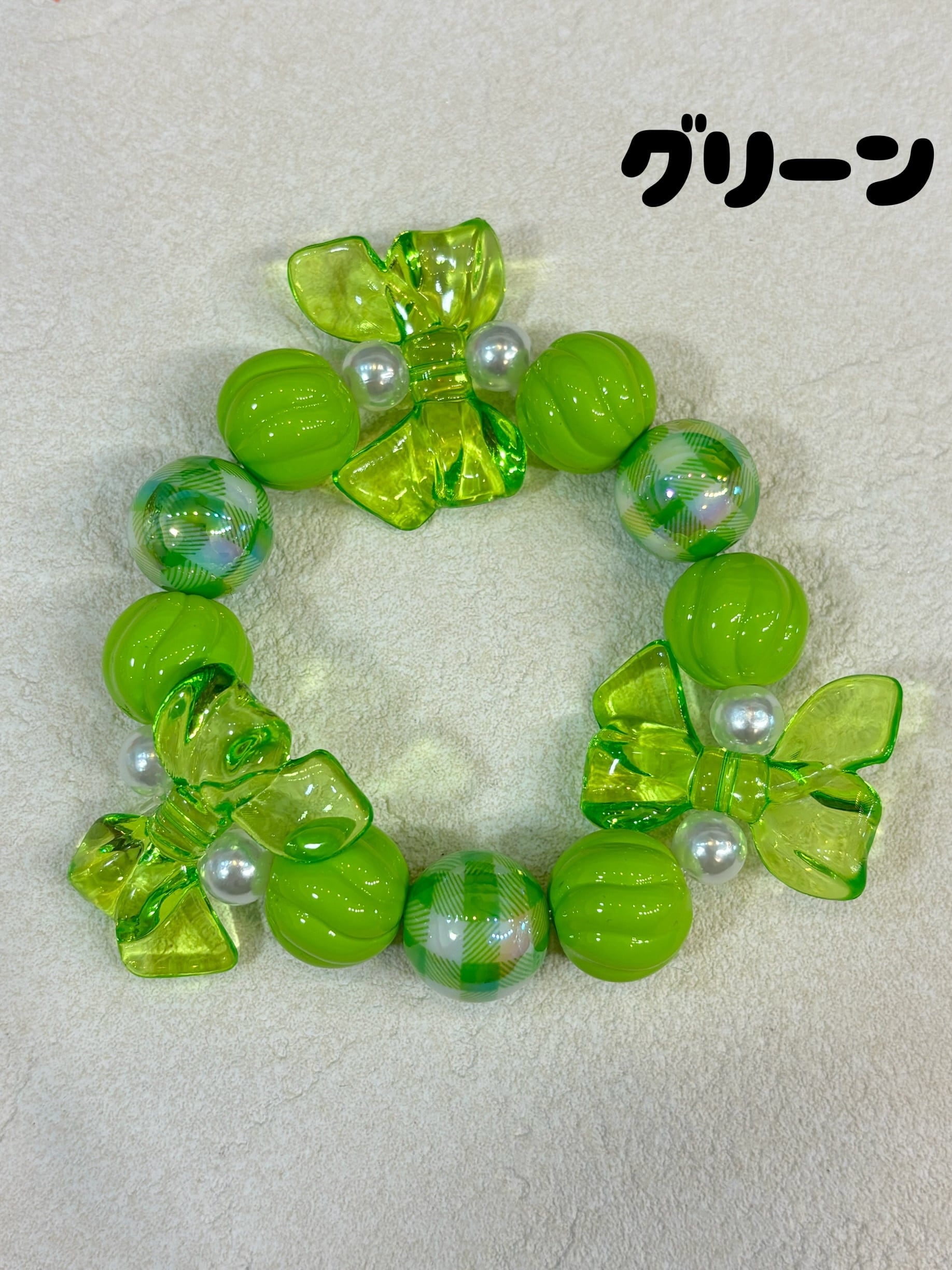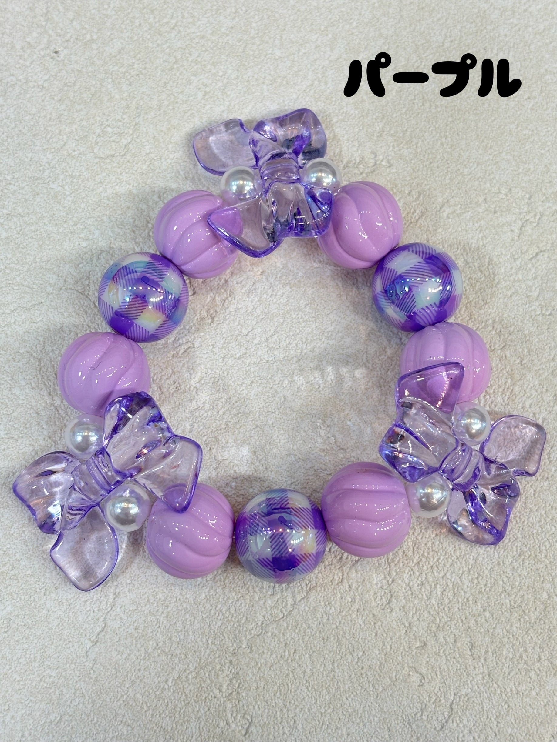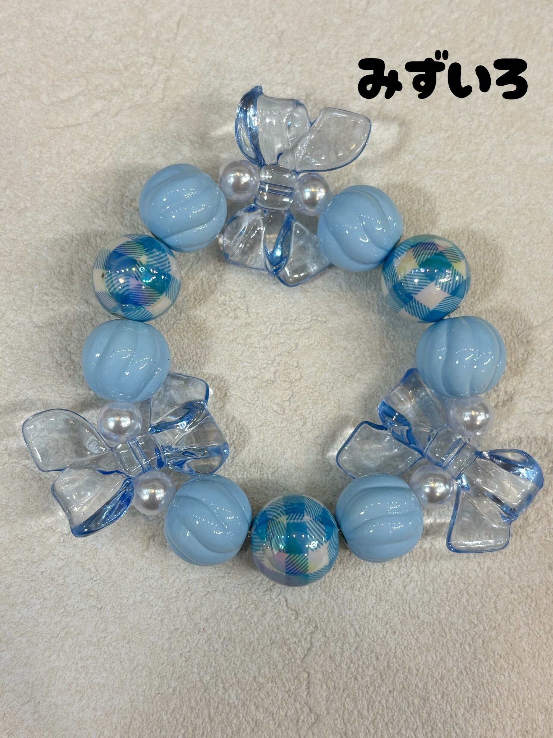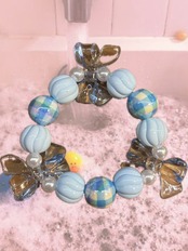 オーロラに光るギンガムチェックの玉がかわいいブレスレット