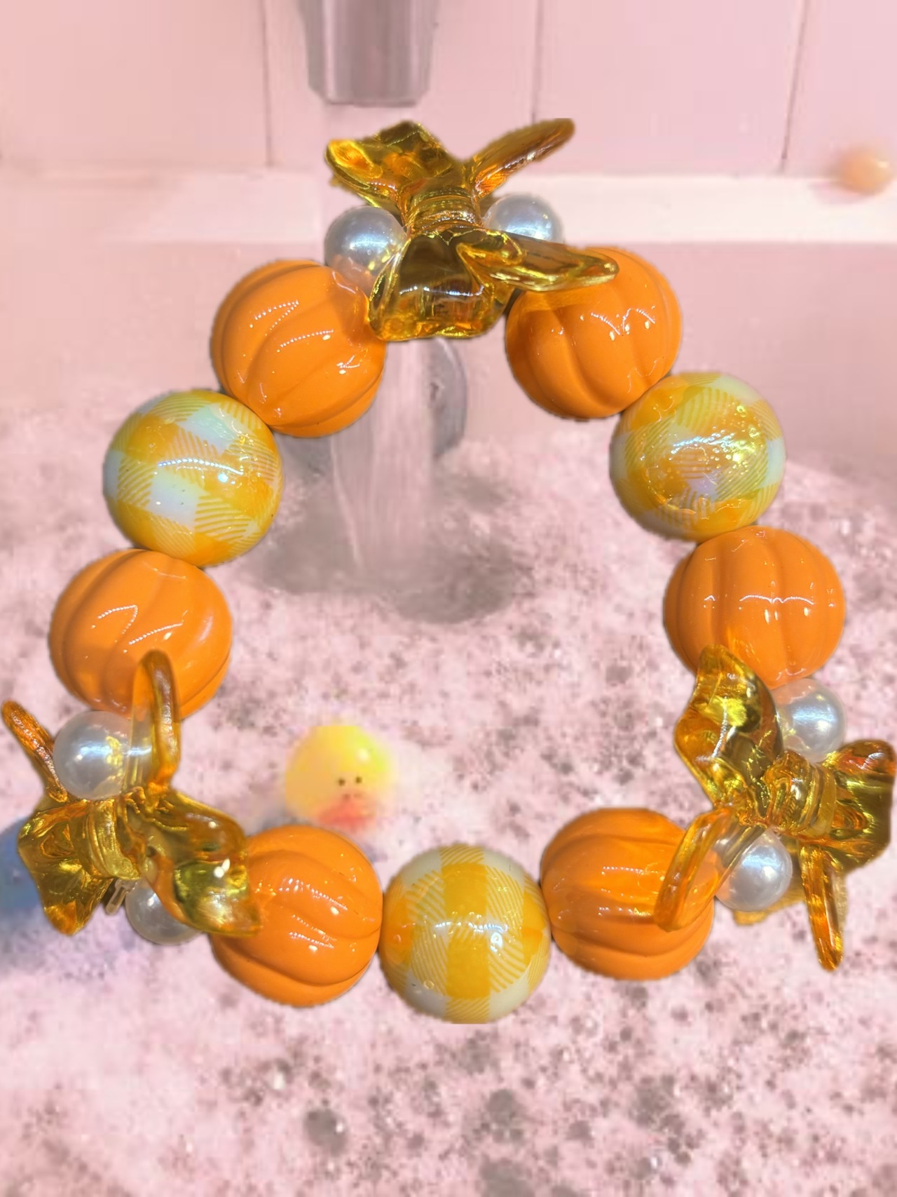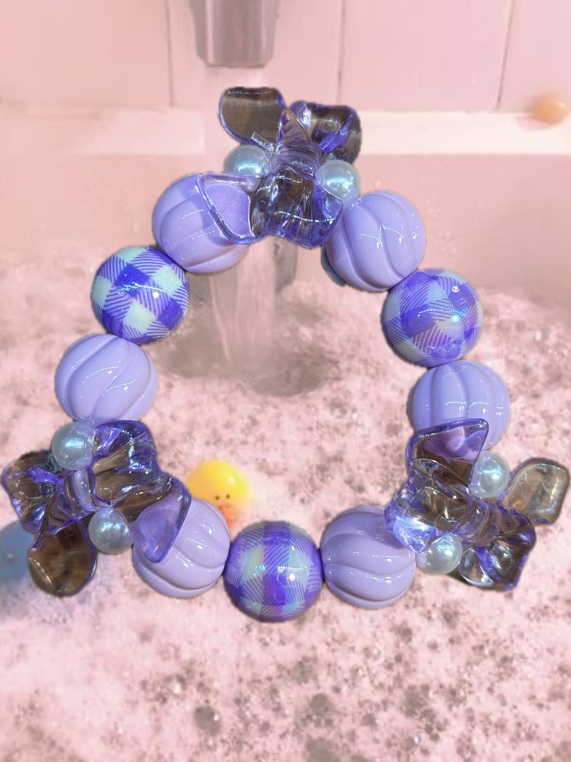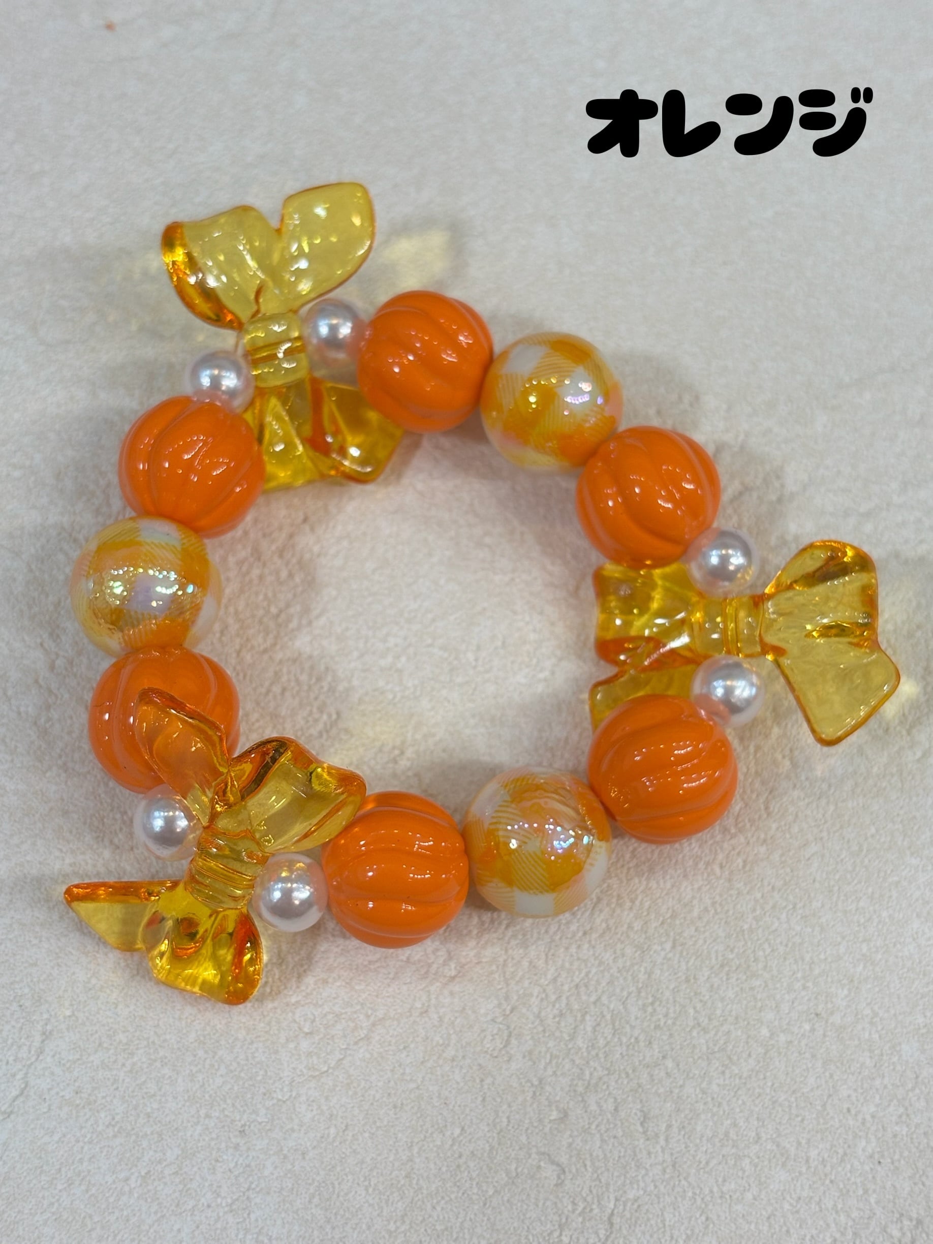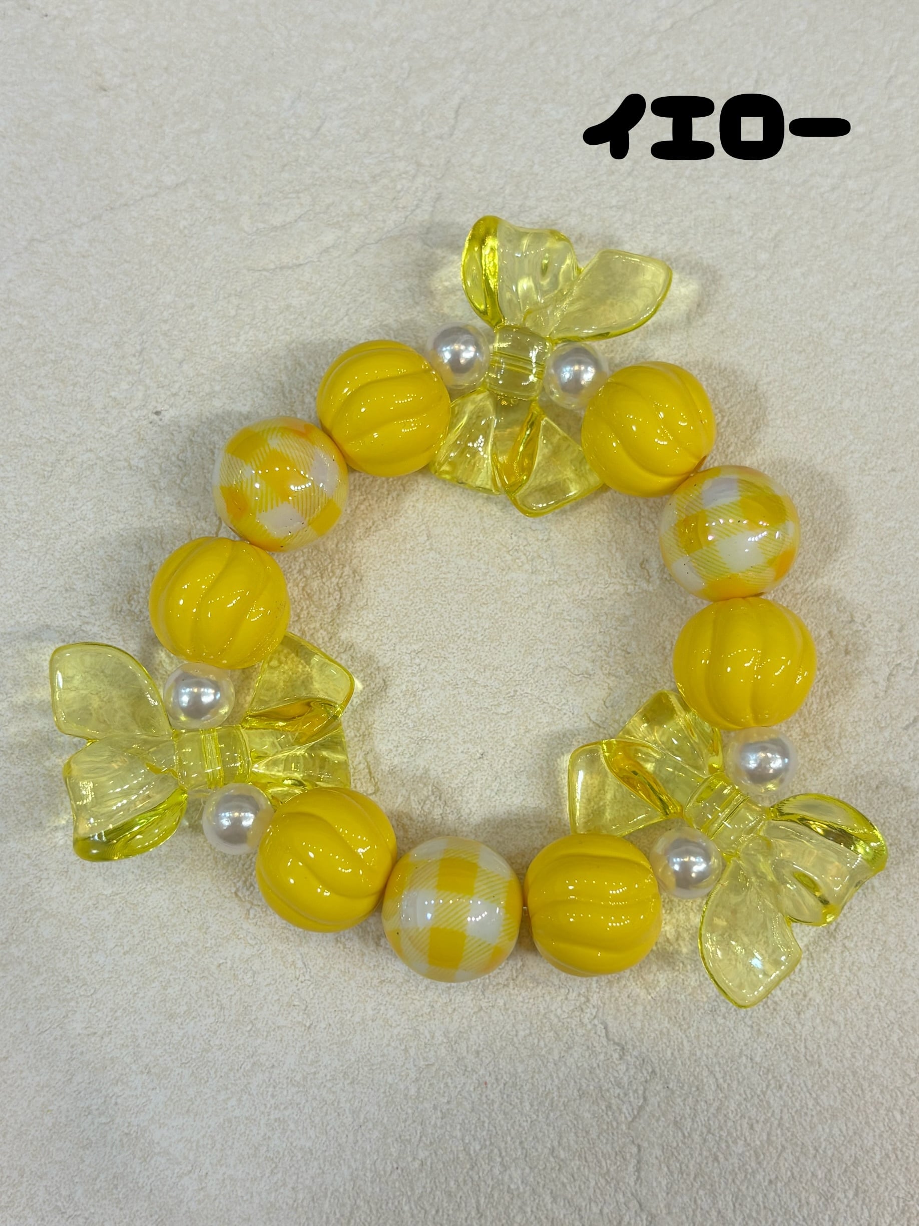 オーロラに光るギンガムチェックの玉がかわいいブレスレット