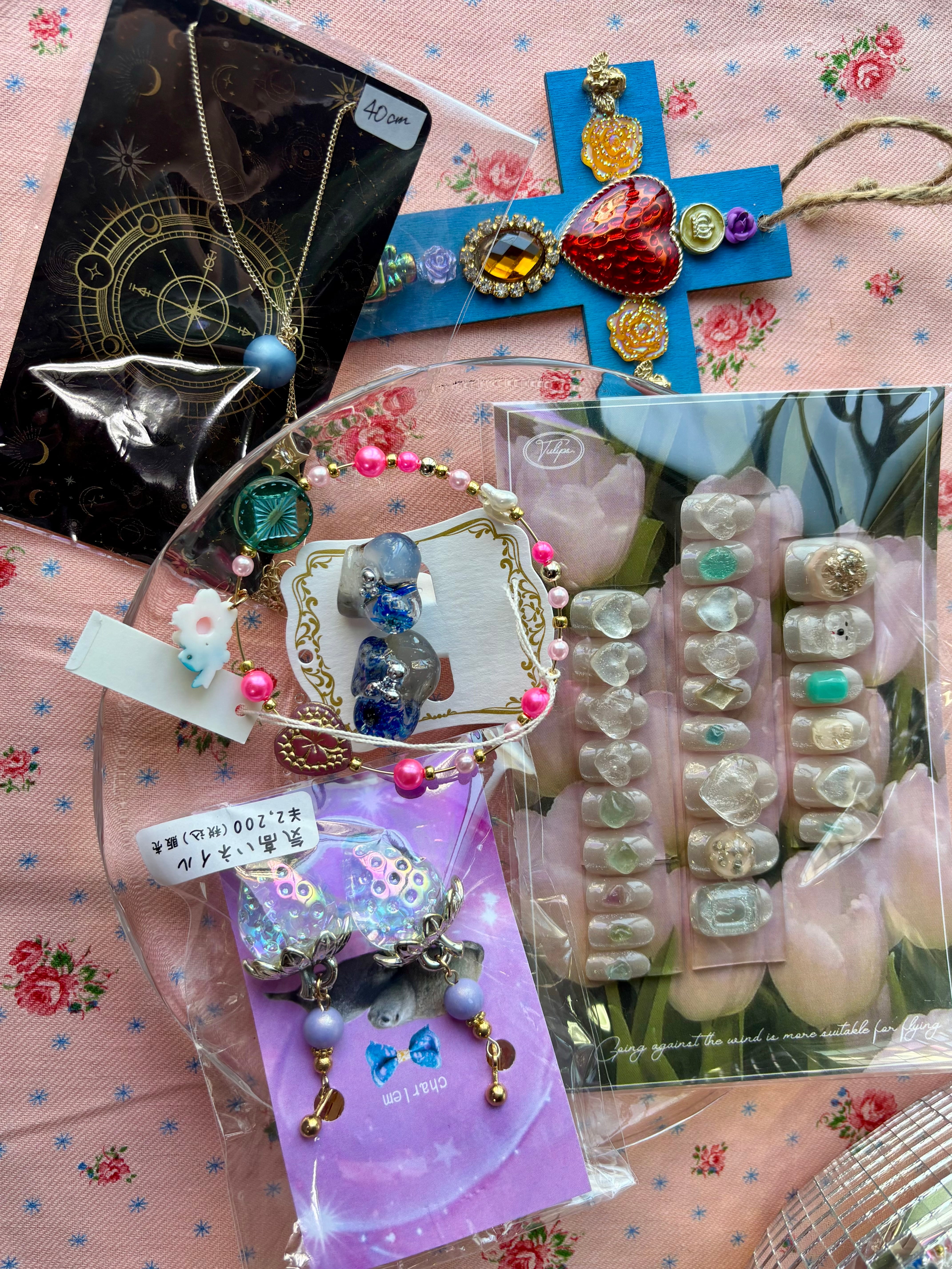 ネイルチップとアクセサリーがランダムに入った福袋。
